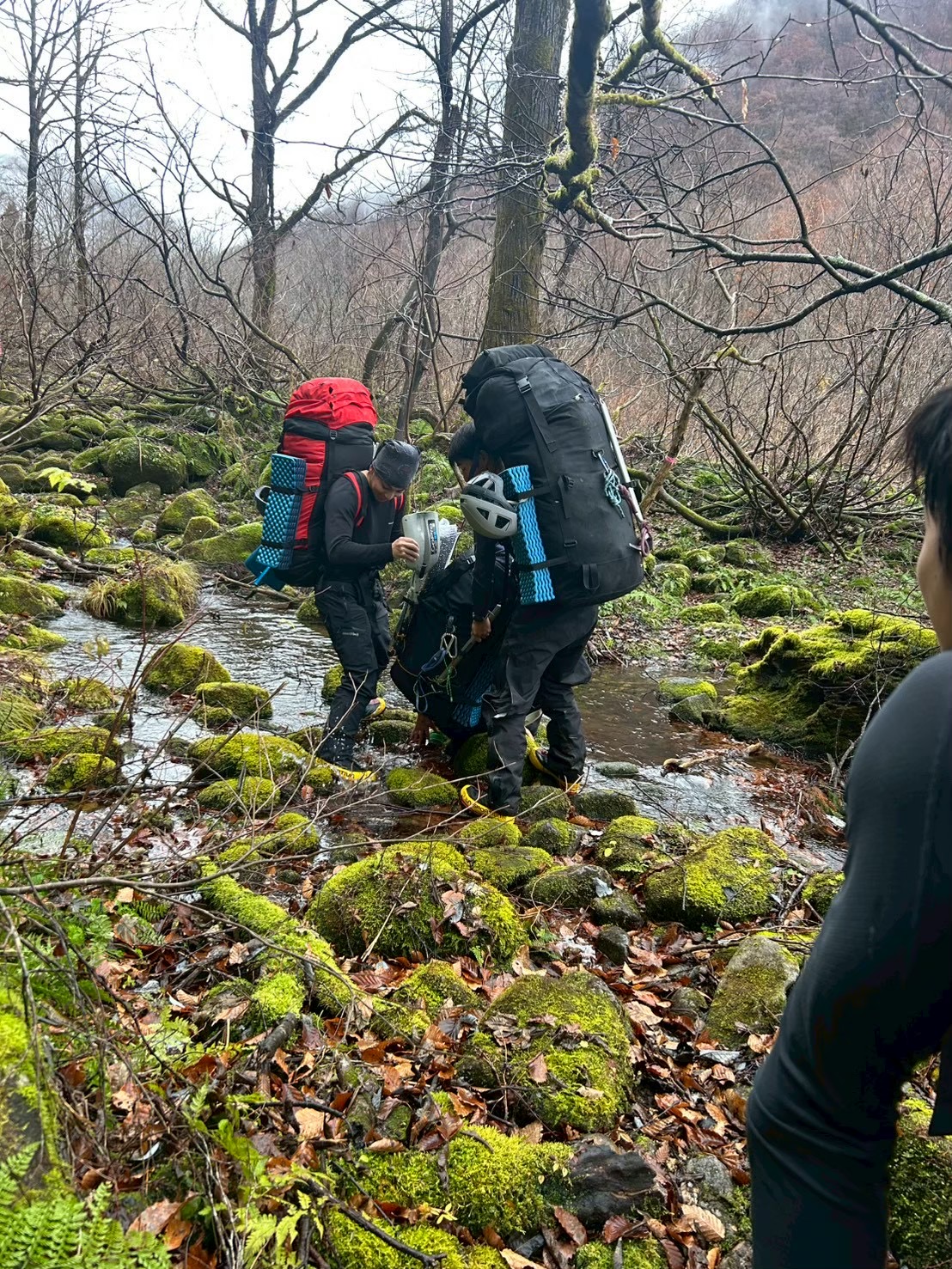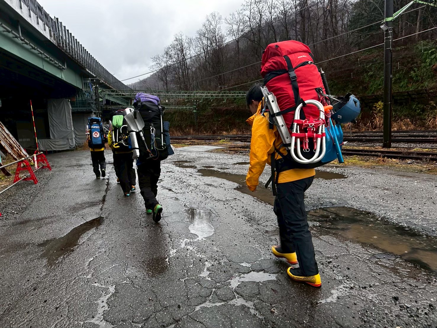 14:00 に部室に集合する。今合宿で使用する装備たちをパッキングして出発。久しぶりにでかい荷物で満員電車に乗る気持ちを味わった。21:10 頃に土樽駅到着。各々翌日の準備をする。この時かなり強い雨が降り出す。雨は翌朝まで降り続く予定のため、計画よりも出発を遅らせることに決める。就寝